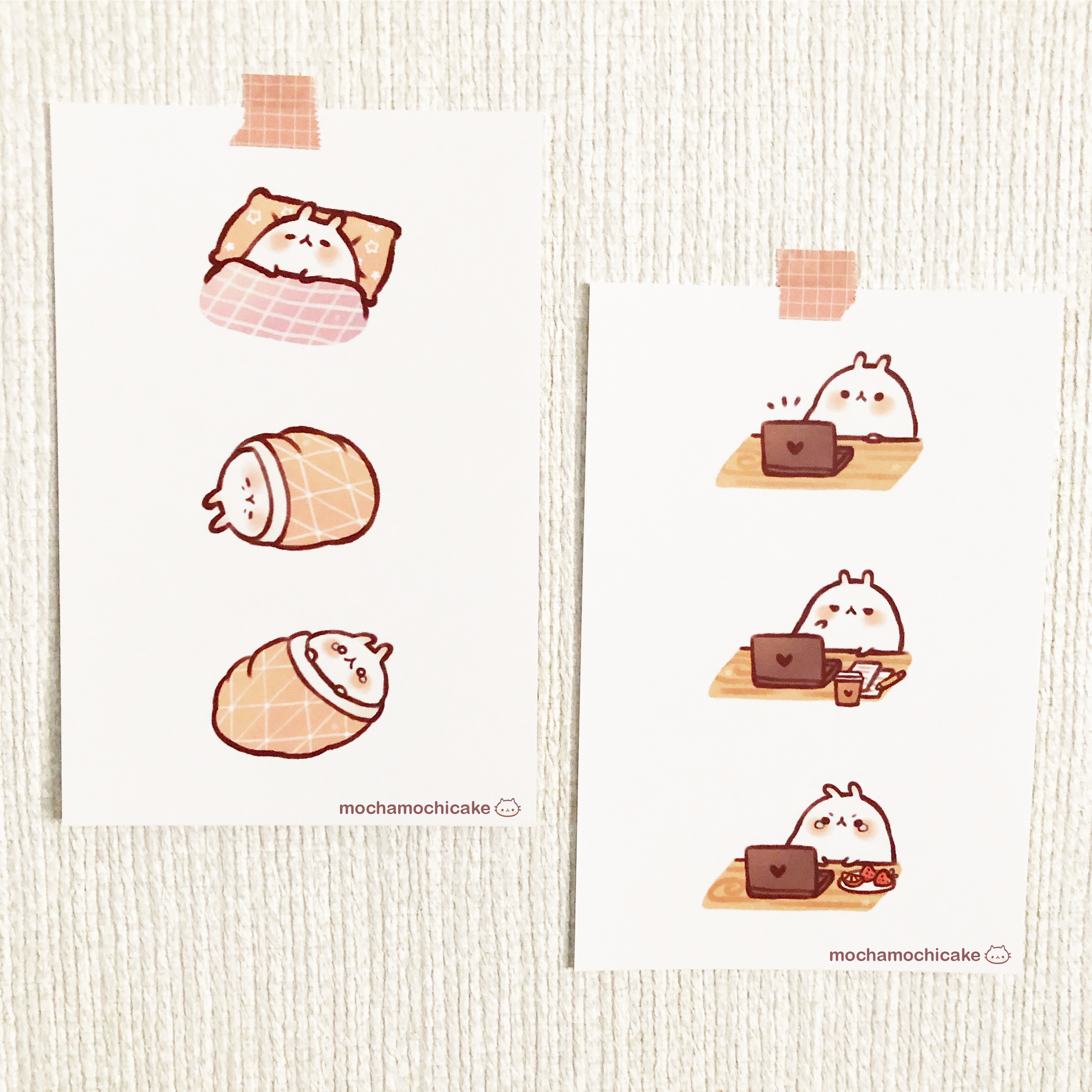 ♡ Experience a delightful blend of whimsy and relatability with these cute bunny prints! From working diligently to trying to get a well-deserved rest, this art print captures the moments that define your days!